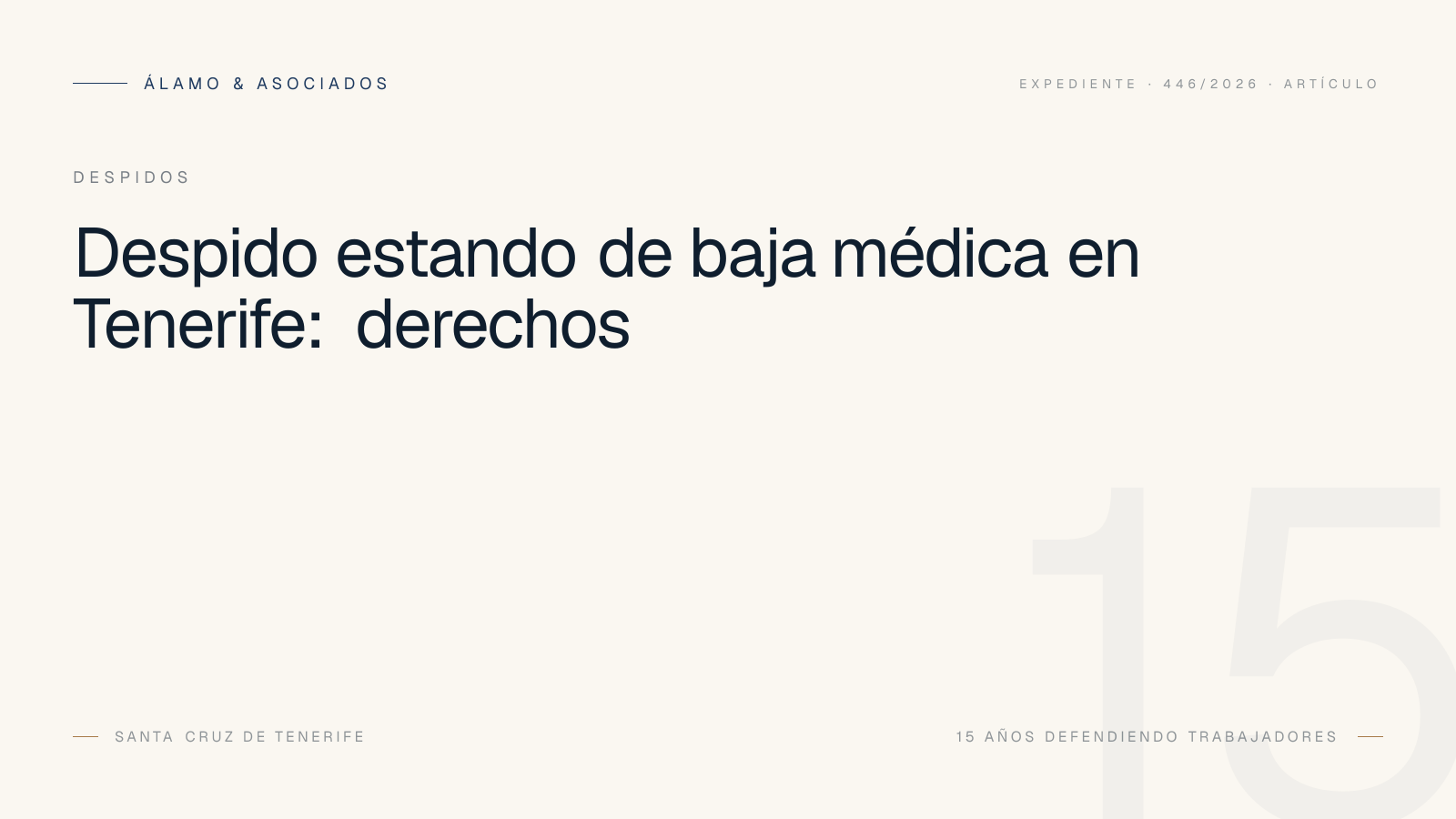 El despido durante la incapacidad temporal (IT) era antes una zona gris. Desde la Ley 15/2022 integral para la igualdad de trato, la protección se ha endurecido radicalmente: el despido en IT se presume discriminatorio y, por tanto, NULO. Readmisión obligatoria y salarios íntegros. En Tenerife, los juzgados y el TSJ de Canarias están aplicando este criterio con consistencia.